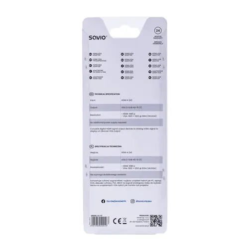 Adapter za video kabel Savio CL-27 VGA (D-Sub) HDMI tip A (Standard bijeli)