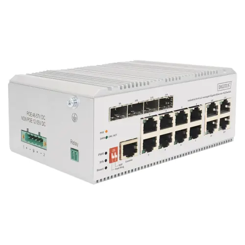 Digitus 8 port Gigabit Ethernet network PoE switch, industrial, L2 managed, 4 SFP uplink
