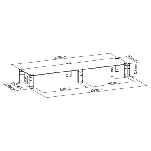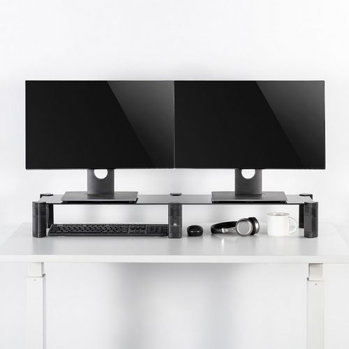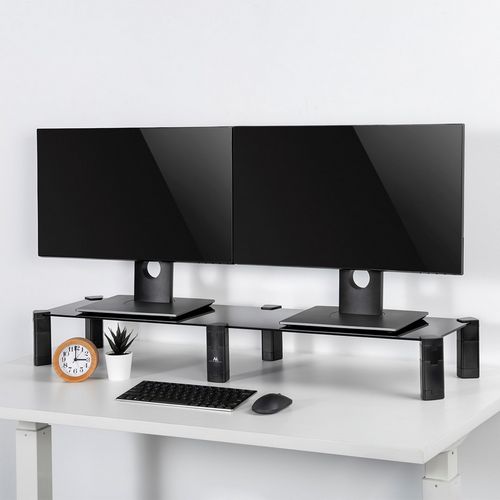 Dual Monitor Stand - Double Maclean, max. 20kg, tempered glass, (1029x285x127mm), MC-936