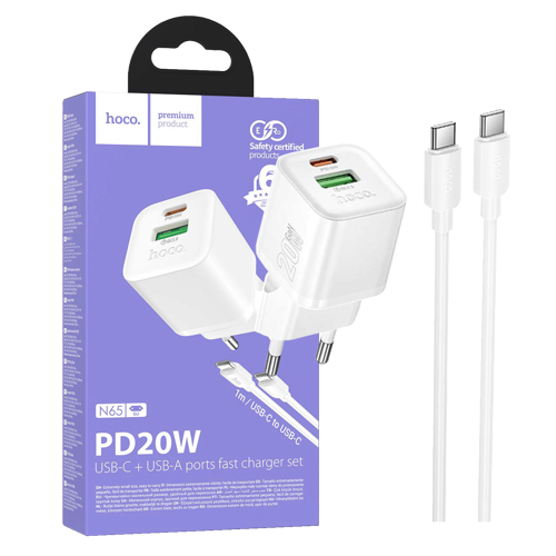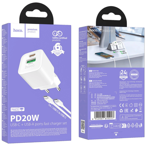 hoco. Punjač kućni sa type C kabelom, PD20W + QC3.0 - N65 Ingenious type C