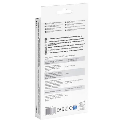 Hub SAVIO AK-57 USB-C-3 X USB-A (s RJ-45 Gigabit Ethernet adapterom, 5000 Mbit/s sivi)