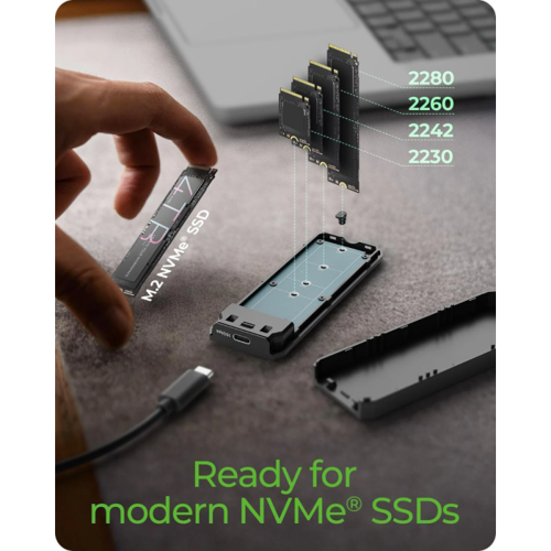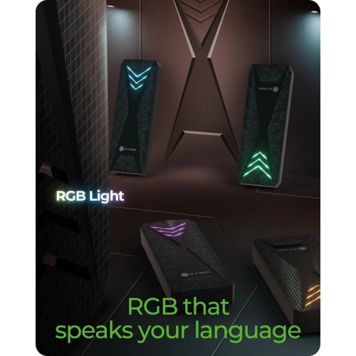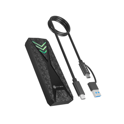 IcyBox E0019272 ohišje za M.2 NVMe SSD z vmesnikom USB-C 3.2 Gen 2 in RGB lučmi