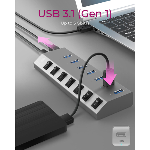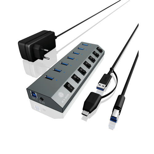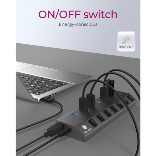 IcyBox IB-HUB1701-C3 7-portni USB-A hub s stikali