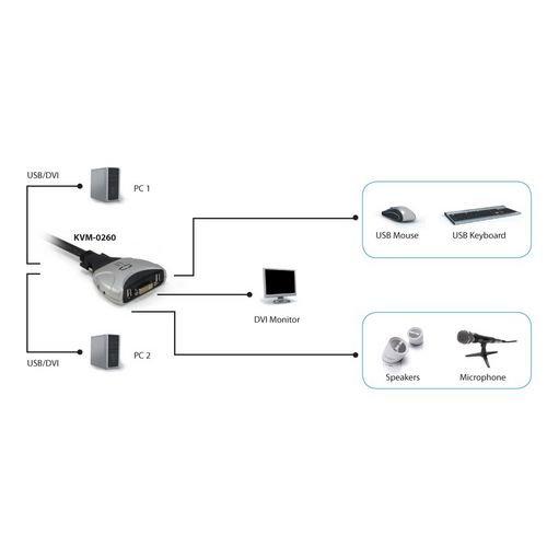 LevelOne 2-Port USB DVI-D Single Link Cable KVM Switch, audio support
