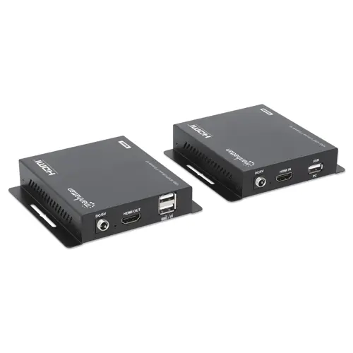 Manhattan 1080p HDMI KVM over IP Extender Kit, Extends 1080p@60Hz signal up to 120m with a single Cat6 Ethernet Cable or an IP-enabled network, Transmitter and Receiver, USB-A ports for PC/Mouse/Keybo