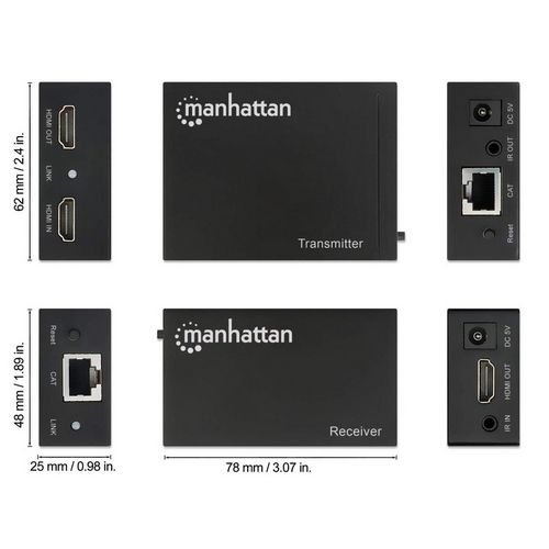 Manhattan HDMI 1080p over Ethernet Extender Kit, Up to 50m with Single Cat6 Cable, Tx & Rx Modules, IR Support, Three Year Warranty