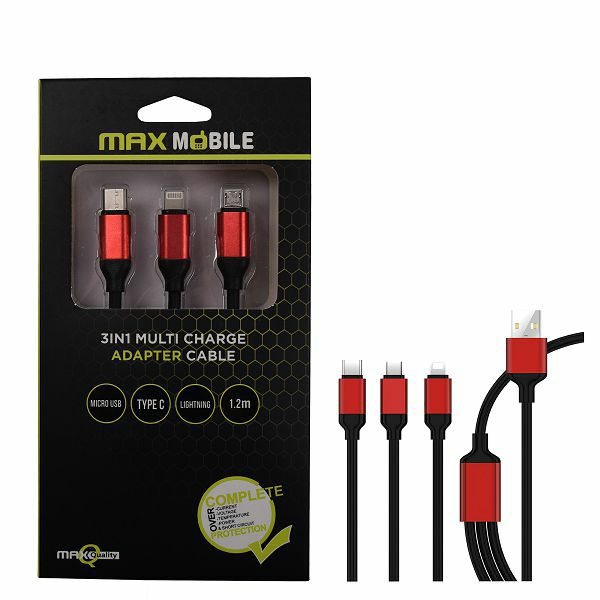 Adapter MAX MOBILE 3U1, MicroUSB/TypeC/Lightning, 1.2m