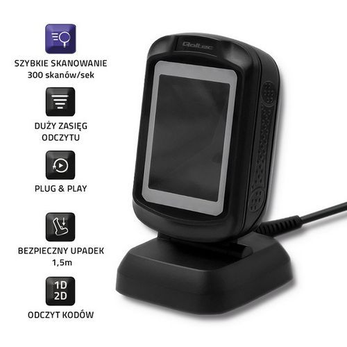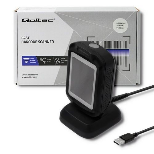 Qoltec 50864 Desktop QR & Barcode Scanner | USB