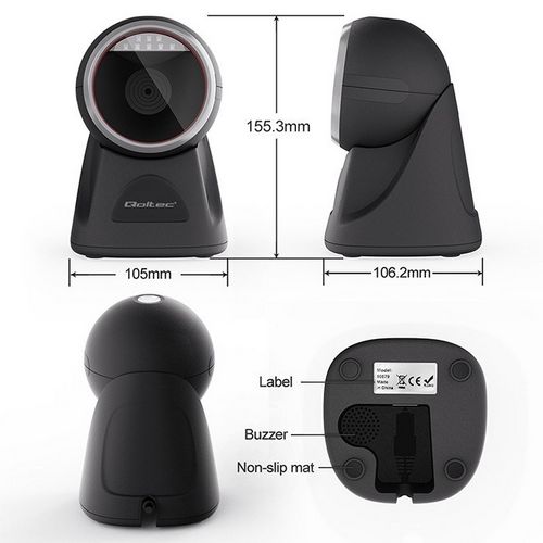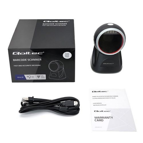 Qoltec Desktop Precision Reader 1D Barcode & QR Scanner | 2D