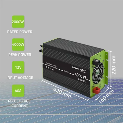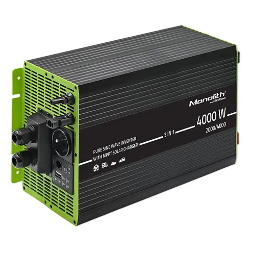 Qoltec Monolith 3-in-1 Solar Inverter with AC Charging | MPPT | UPS | ATS | 2000W | 4000W | 12V to 230V | Pure Sine