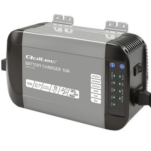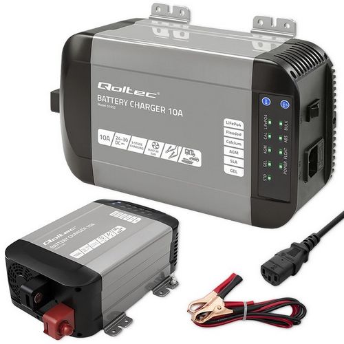 Qoltec Smart Monolith Battery Charger for LiFePO4 AGM GEL SLA batteries | 10A | 24V