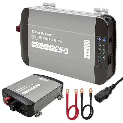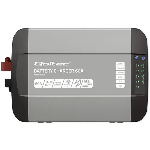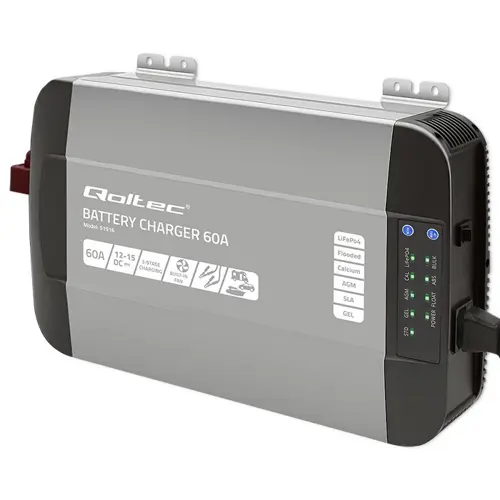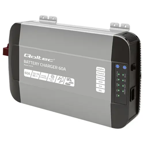 Qoltec Smart Professional Monolith Battery Charger for LiFePO4 AGM GEL SLA batteries | 60A | 12V | Fast charging