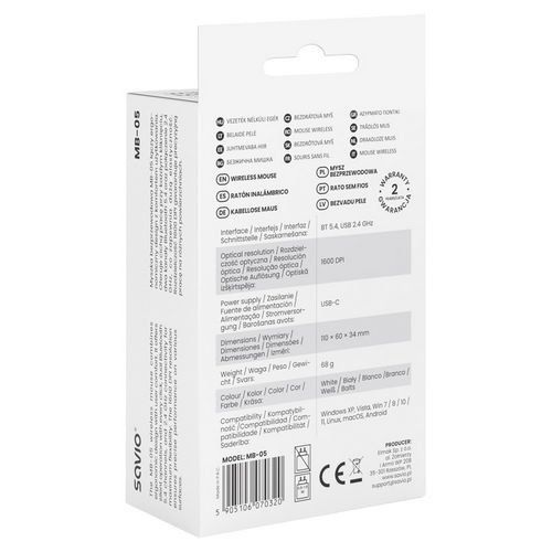 Savio MB-05 mouse Universal Ambidextrous Bluetooth 1600 DPI