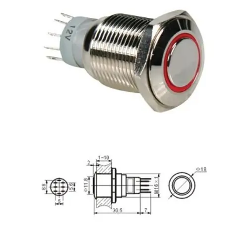 Taster anti vandal ,crveni 18 mm