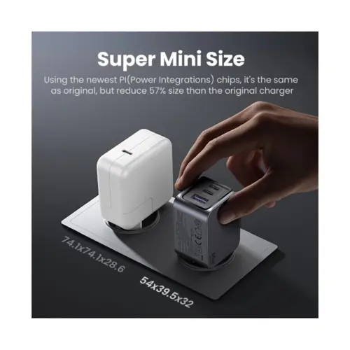 UGREEN Nexode Pro, 65W, 2x USB-C, USB-A, USB-C kabel, GaN, sivi