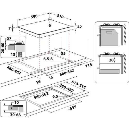 Whirlpool AKTL 629/NB1 White Built-in 59 cm Gas 4 zone(s)